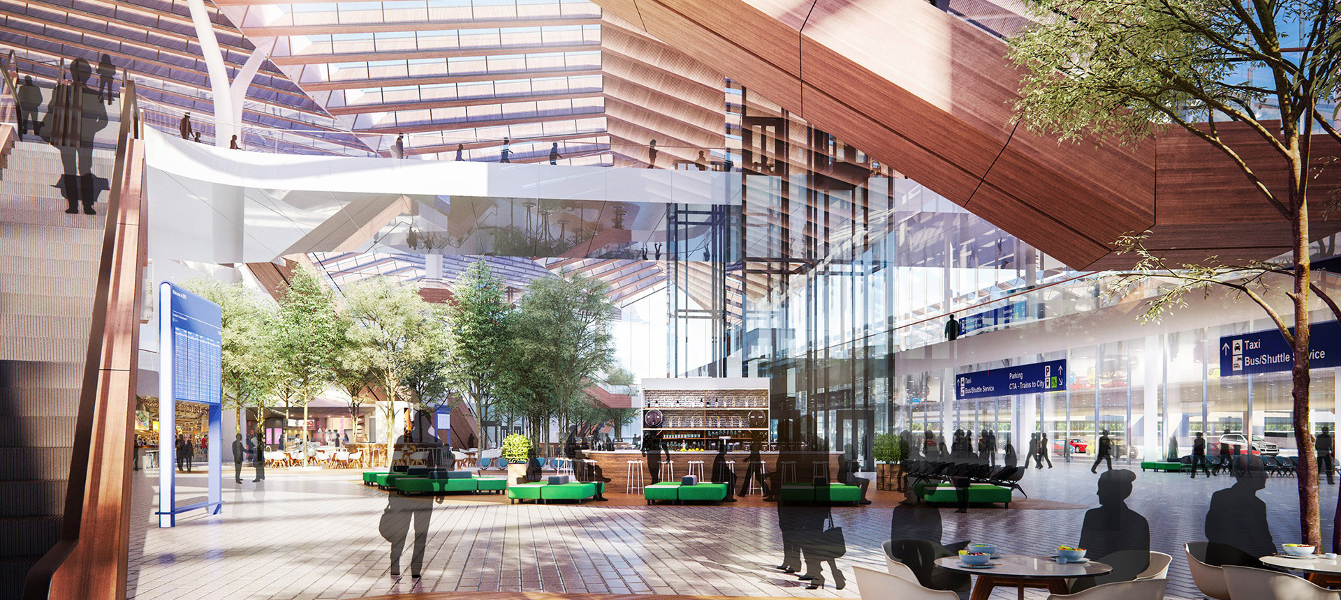 At the heart of the plan is the new O’Hare Global Terminal, a 2.2 million square foot replacement for Terminal 2 that will serve as an architectural and infrastructural gateway to the city. Designed by the Studio ORD Joint Venture led by Studio Gang Architects and including Solomon Cordwell Buenz, Corgan, STL Architects, and Milhouse Engineering the terminal will house international and domestic flights under one roof. Its flowing, light-filled design is meant to honor Chicago’s identity while showcasing its culture and diversity to the millions of travelers who pass through its halls each year.