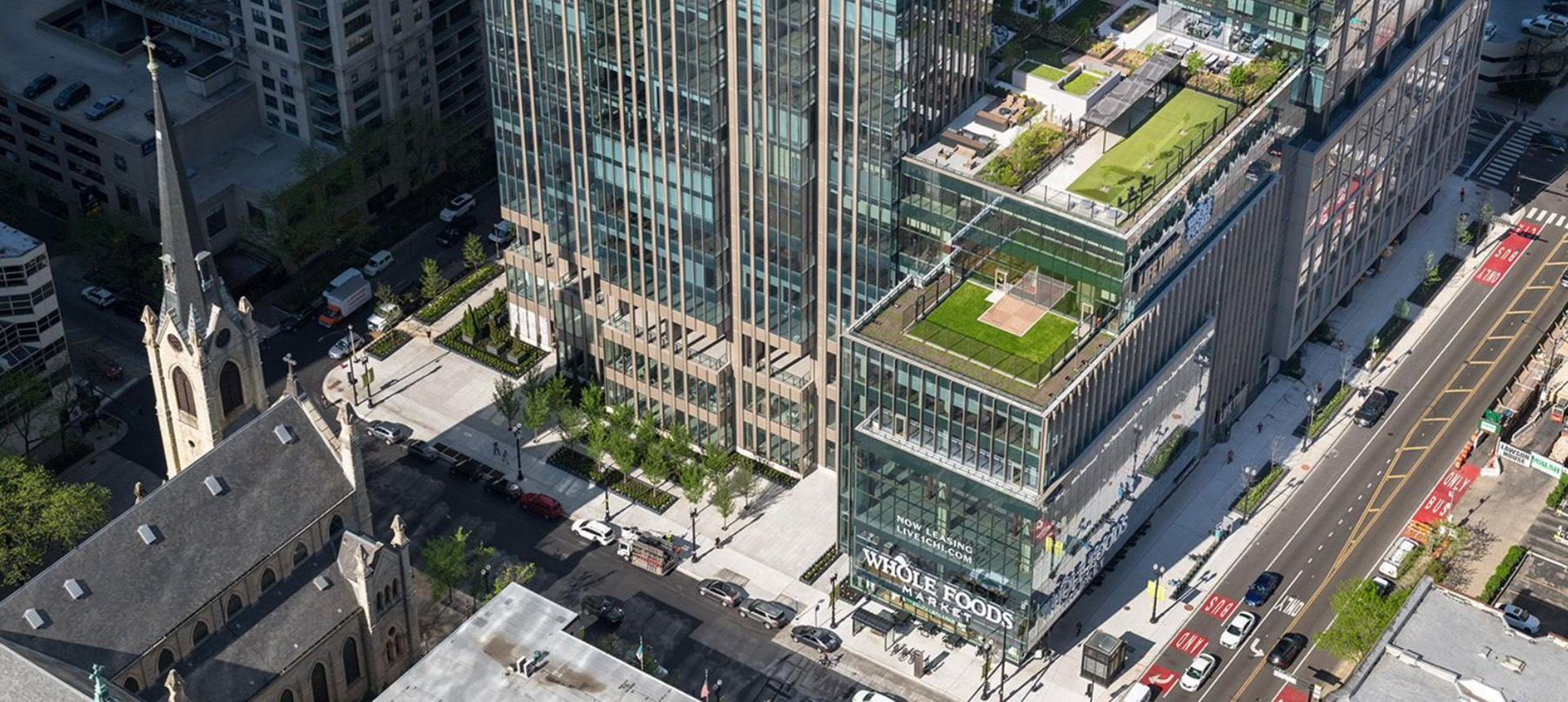 Rising above the skyline at 969 feet, One Chicago is one of the tallest and most ambitious mixed-use towers in the city’s recent history. With 812 residential units, 188,000 square feet of retail, and 55,000 square feet of commercial space, the twin-tower development redefines urban density and luxury in the heart of River North. Its shared podium houses building parking, loading docks, retail (Whole Foods), fitness (Lifetime Fitness) and other amenities acts as a critical operations hub for a property of this scale.
